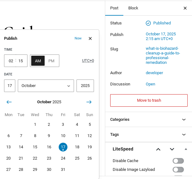 - Find the field labeled Publish or Published on. This field shows the current publication date and time.